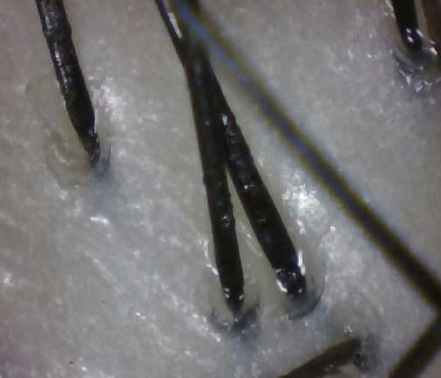 已有初步固態油脂的些許堆積,需要一些淨化洗髮精去請喜的階段。